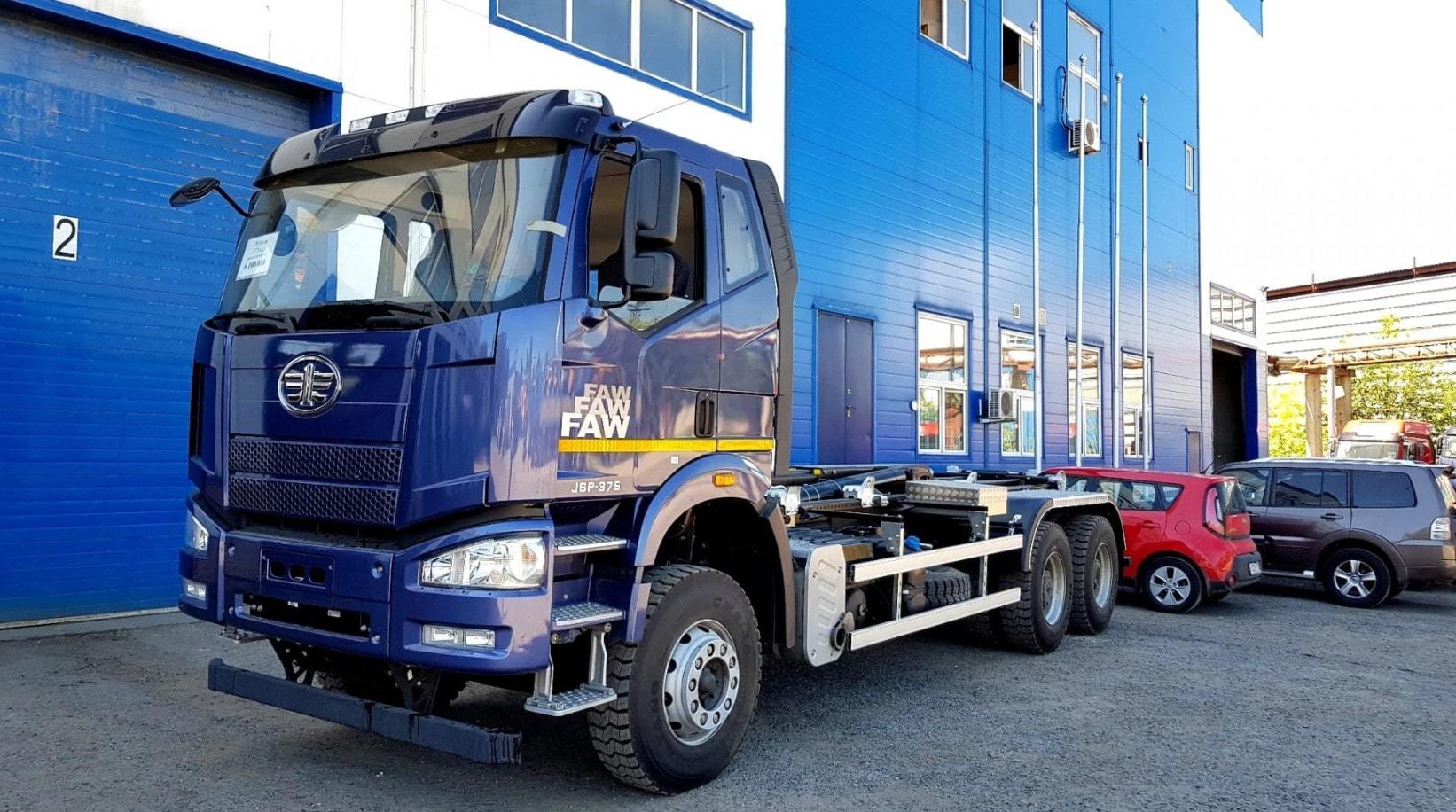 Мультилифт FAW 6x4 – машина китайского производства, которая используется для транспортировки контейнеров длиной от 4800 до 7200 мм.