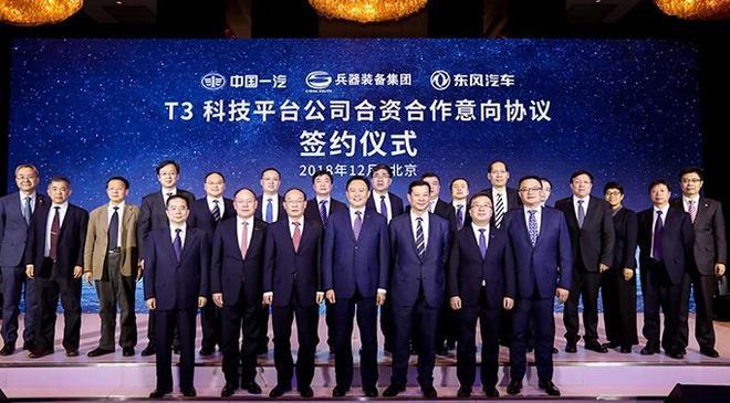 21 декабря 2018 года Корпорация FAW, China South Industries Group Corporation (CSG), дочерняя компания CSG Changan Automobile Company Limited (Changan) и Dongfeng Motor Corporation (DongFeng) в Пекине подписали Соглашение о намерениях сотрудничества при создании совместной компании T3 Technology Platform, альянс позволит улучшить собственные инновационные системы в +автомобильной отрасли и реализовать стратегию создания мощной автомобилестроительной державы.