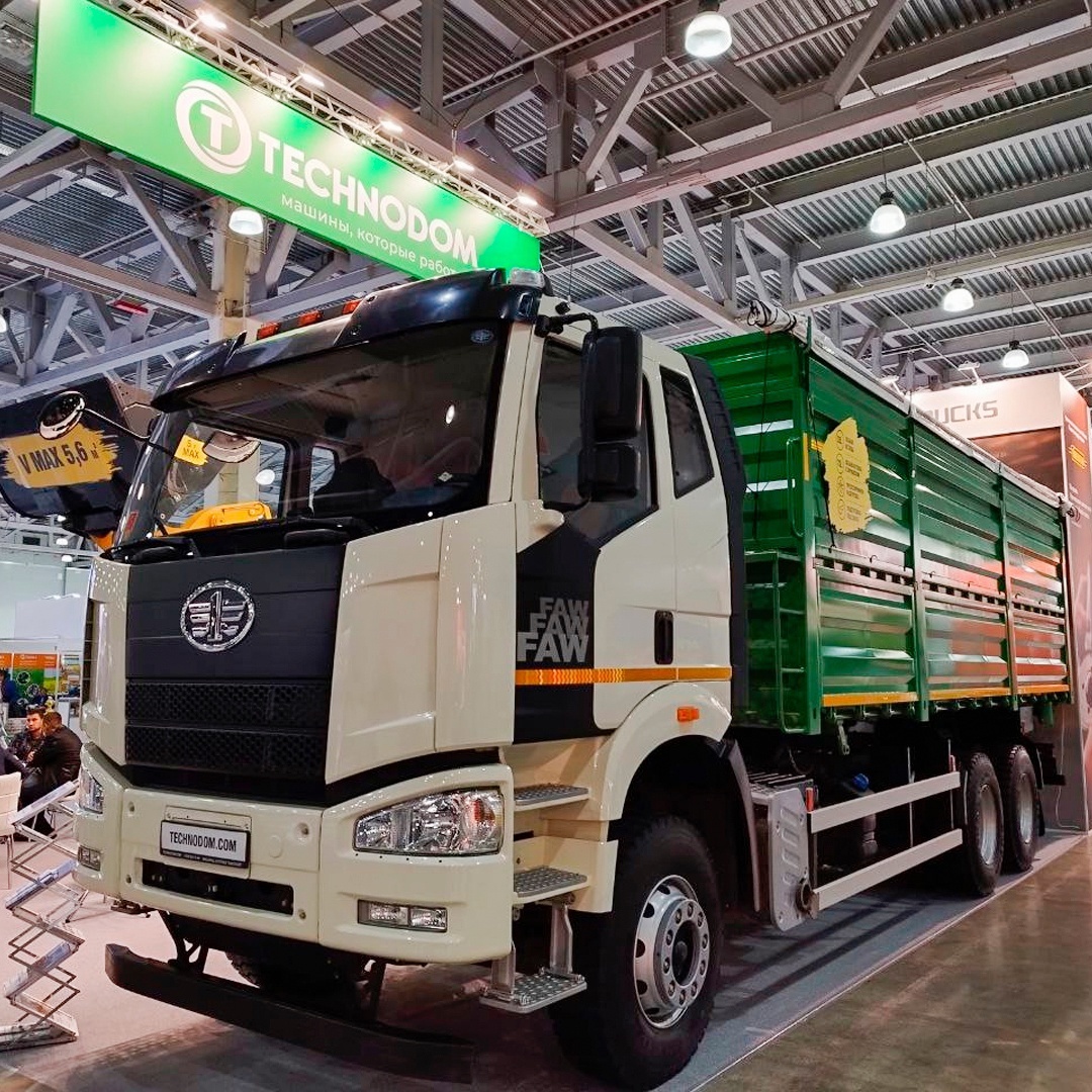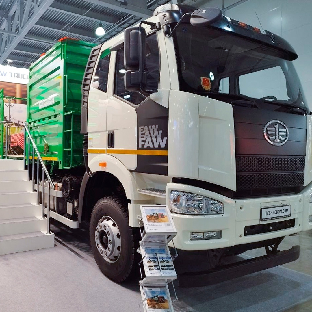 В зале №14 вы сможете увидеть зерновоз на базе самосвала FAW 6х4. Кузов изготовлен по специальному заказу.